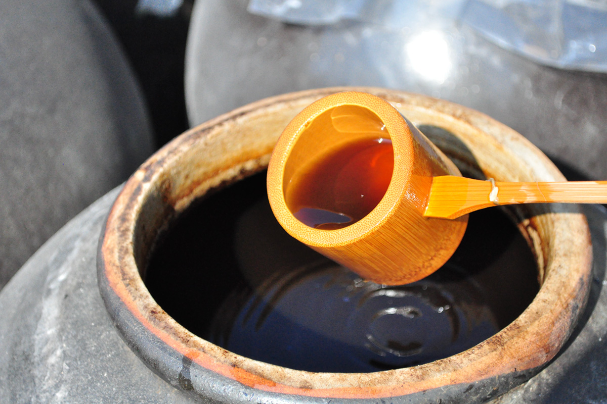 福山黒酢は鹿児島県霧島市福山にて、200年続く伝統的な製法であるアマン壺を用いた壺作り製法により、熟練した職人による手作業で、鹿児島の大自然のもとじっくり熟成させてつくります。